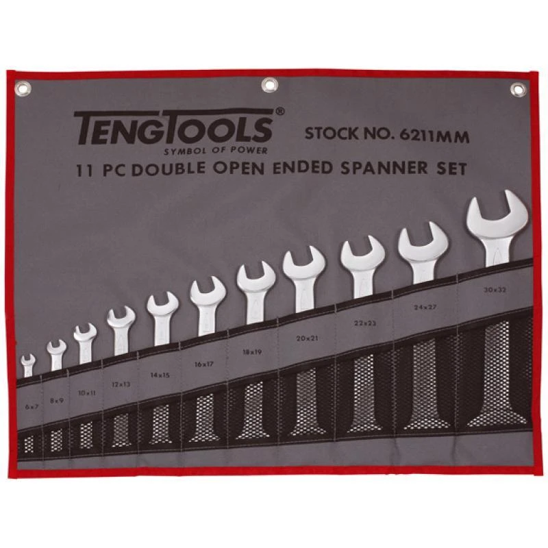 - Teng Tools 11 piece double open ended spanner set with the same dimension at both ends.