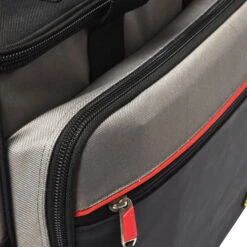 Internal Features: The inside front has a fully featured storage compartment holding 3 rows of tools up to 31.75cm (12.5″). The reverse side has compartments for meter storage, and a small cordless drill plus further pockets for hand tools. It is smaller than the Tech LC with a foot print of 20.3cm x 25.4cm (8″ x 10″)